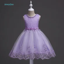 JaneyGao Flower Girl Dresses Beaded Elegant Purple Color with Appliques Lace New Fashion for Wedding Party