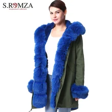 SROMZA High Women Fashion Large Real Fox Fur Collar Parka Faux Raccoon Fur Lining Hooded Warm Coat Outwear Winter Jacket Recommend